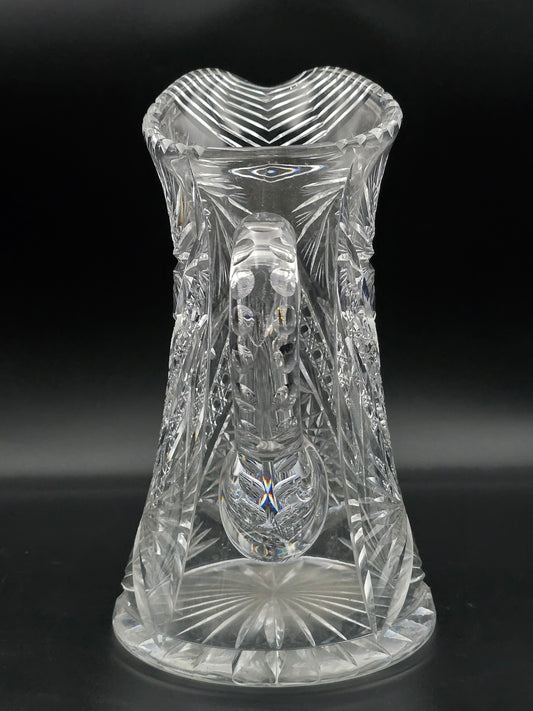 Antique Heavy Cut Crystal Jug – Pinwheel Pattern, Thick Handle & Star-Cut Base, 3.4kg, 1.7L – Ideal for Pimms / Water or Lemonade.