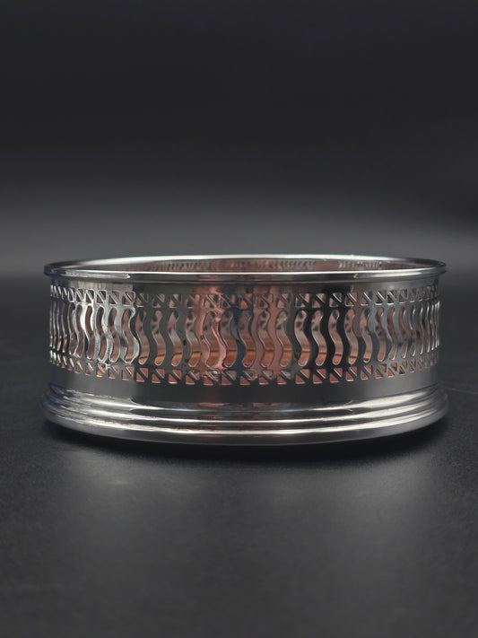 Antique Solid Silver Wine Bottle Coaster, Barker Brothers, Birmingham 1921, Wood Base & Felt Lining, Original Box