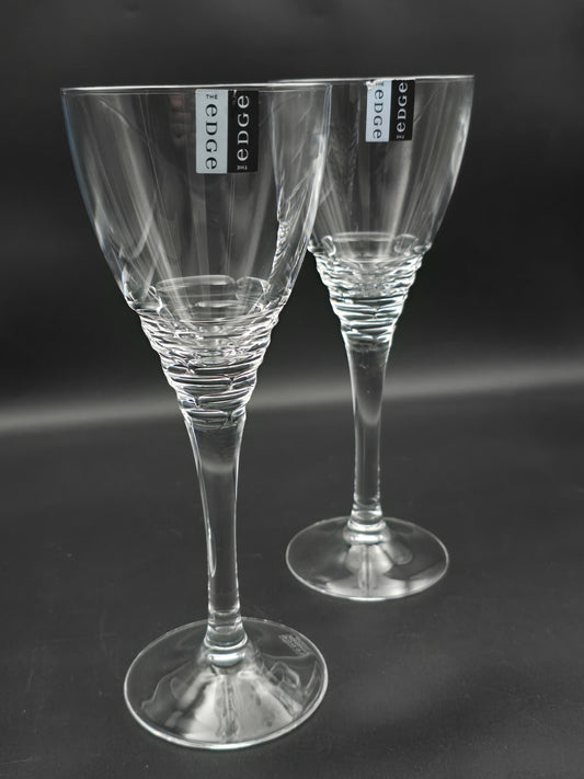 Pair of Large Edinburgh Crystal The Edge Collection Cirrus pattern wine glasses 350ml 24.5cm tall.