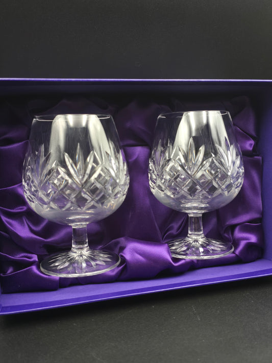 Pair of Edinburgh Crystal Lomond Pattern Crystal Brandy glasses 12oz