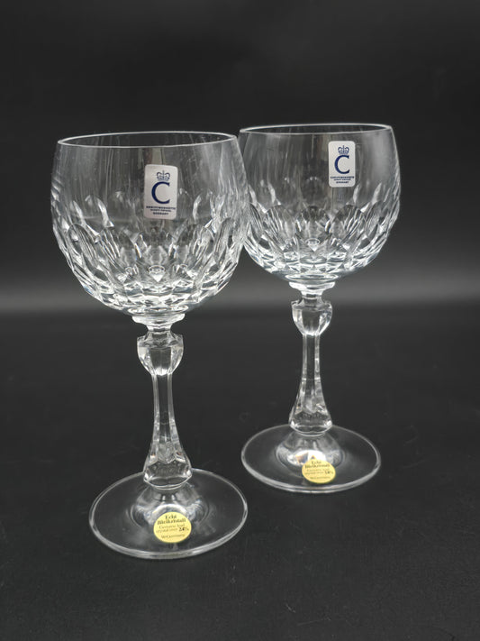 Pair of Stuart Crystal Ice Wine Glasses by Jasper Conran – 350ml Large Cut Crystal Goblets, Signed Vintage Glassware