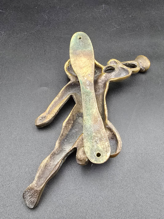 Pair of Vintage Solid Brass Cherub Door Knockers – Mid-Century Trumpeting Putti – Decorative Wall Accents or Thornockers