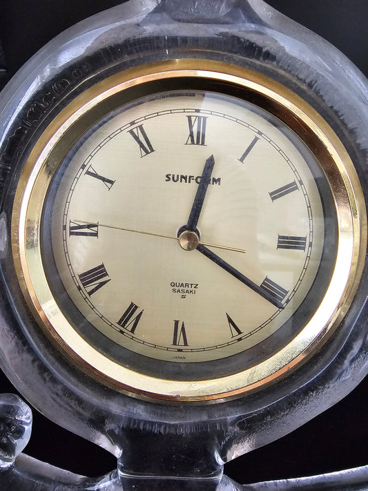 Rare Sasaki Japanese Crystal Sunform Fish Quartz Mantle Clock – 1980s Japan – Sculptural Clear Crystal – Fully Working – Vintage Mid-Century Modern Decor