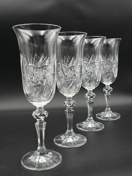 Set of 4 Bohemian Crystal Champagne Flutes | Czechoslovakia Cut Crystal | Wedding Toast Glasses | 200ml | Vintage Czech Glass