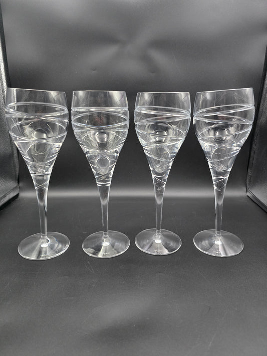 Set of 4 Royal Doulton Earlswood Pattern Crystal Champagne Flutes. 150ml. 21cm tall.