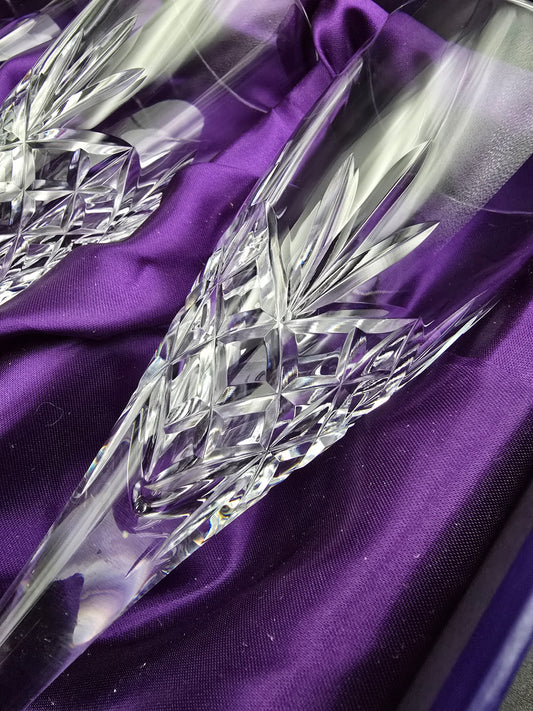 Pair of Waterford Crystal Elegance Trumpet Champagne Flutes 200ml. Boxed