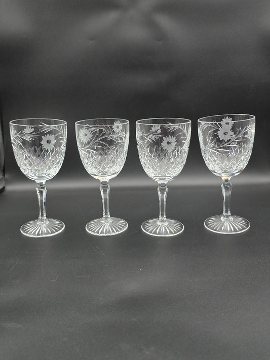 Set of 4 Large Edinburgh Crystal Thistle Crystal wine glasses 275ml 16.5cm tall