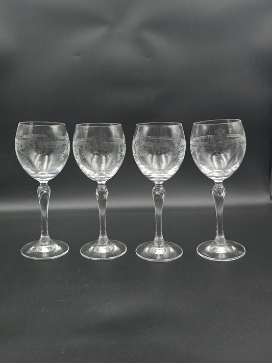 Set of 4 Vintage etched Durand Dampierre Crystal Wine Glasses. 200ml. 18.5cm tall