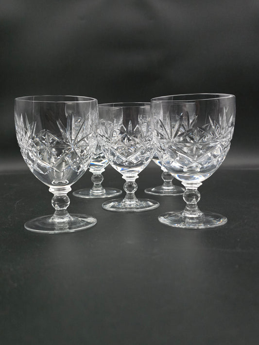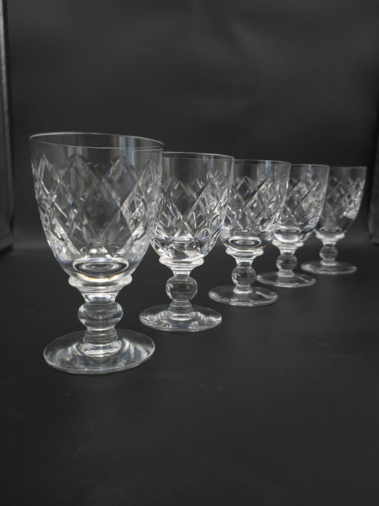 Set of 5 Royal Doulton ‘Juno’ Crystal Wine Glasses – Knopped Stem – 12.5cm Tall – Vintage British Glassware – Immaculate Condition