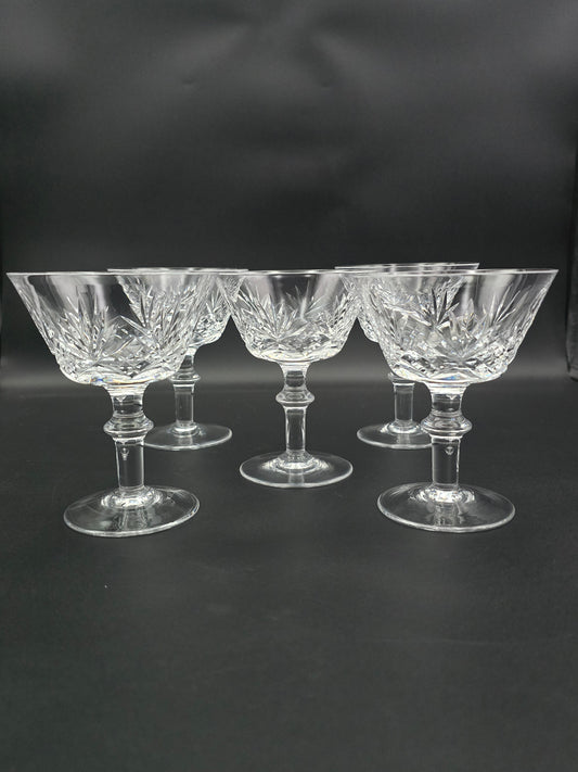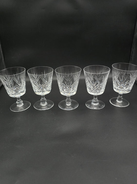 Set of 5 Tudor Crystal Raleigh Pattern English Crystal Sherry glasses 100ml