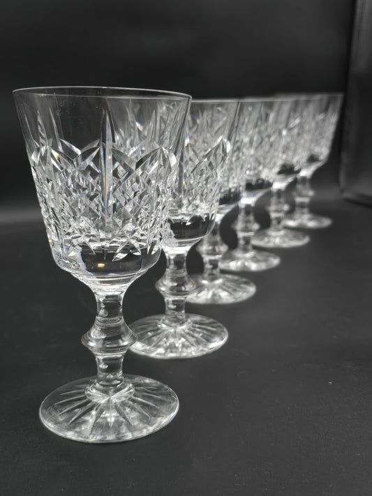 Set of 6 Edinburgh Crystal Lomond Pattern sherry or small wine glasses. 135ml