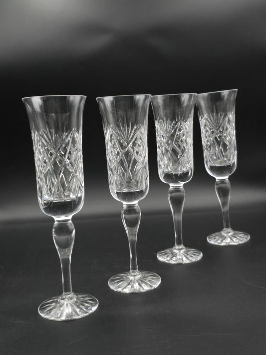 Vintage Lead Crystal Champagne Flutes – Set of 4, 150 ml, 22 cm Tall with Star‑Pattern Base & Teardrop Stem – Elegant Cut‑Glass Barware