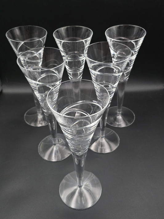 Full set of 6 Stuart Crystal Jasper Conran Large Champagne Trumpet flutes. 275ml. 26cm tall.