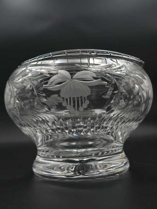 Large Vintage Crystal Footed Rose Bowl – Fuchsia & Fern Cut Design, Star Base, 1.5kg Unmarked, Stuart/Royal Brierley Style