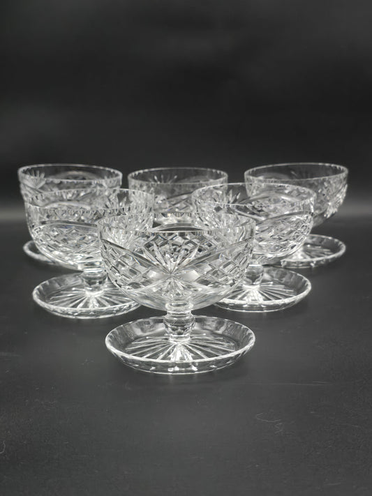 Beautiful vintage set of 6 Lipped Crystal starter or dessert saucer bowls