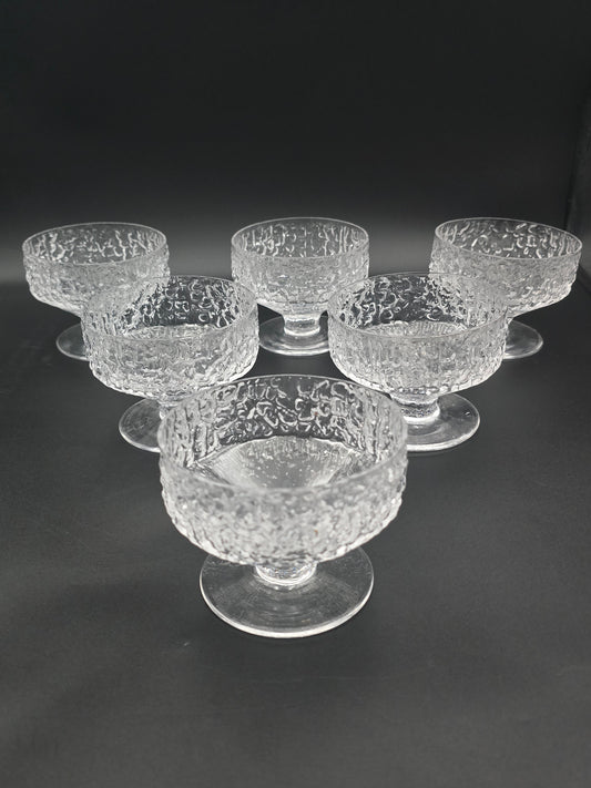 Set of 6 Whitefriars “Glacier/Bark” Dessert Bowls by Geoffrey Baxter – Mid‑Century Textured Glass, Perfect Condition