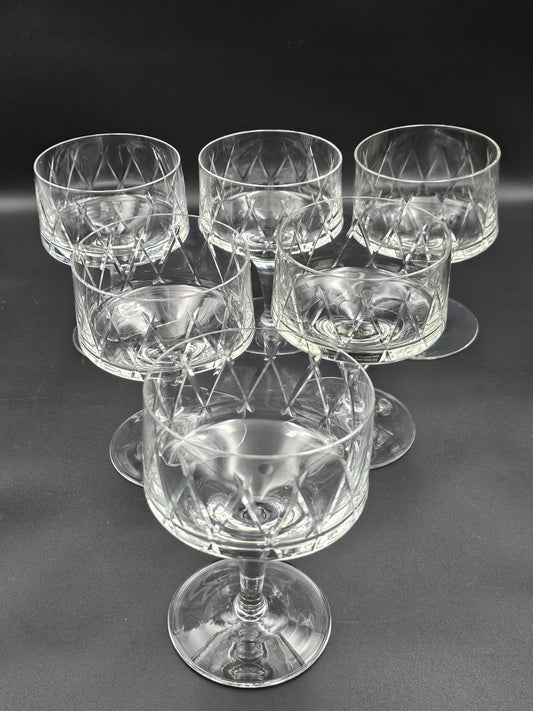 Claddagh (Older, Square Bowl) by Galway Crystal set of 6 Sherry or Liqueur glasses. Ideal for a Baileys.
