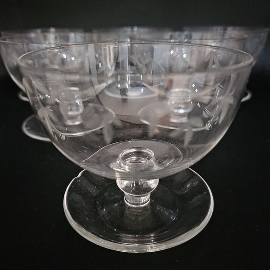 Set of 6 Crystal Noritake Bamboo Ice cream Sundae bowls.