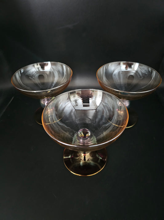 Vintage set of 3 Tri Coloured Crystal Dessert or starter bowls Bowls by Krosno Poland