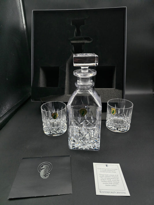 Waterford Lismore 3-Piece Connoisseur Square Decanter and Tumbler Set
