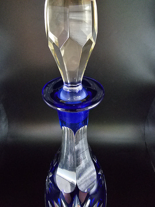 Cobalt Blue Cut to Clear Crystal Bohemian Decanter. 39cm