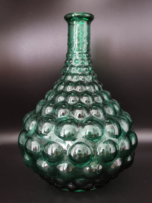 Stunning Vintage Midcentury Olive Green Italian Bubble Hobnail Art Glass Bottle Decanter Vase