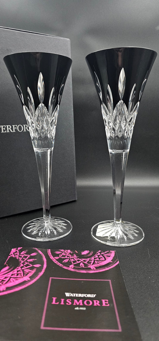 Pair of Waterford Lismore Black Crystal Toasting Flutes