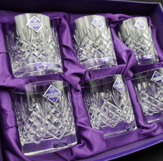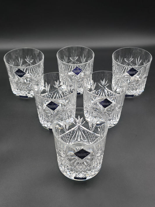 Set of 6 Edinburgh Crystal EDI41 Pattern Crystal Whisky Tumblers. 10oz. Boxed.