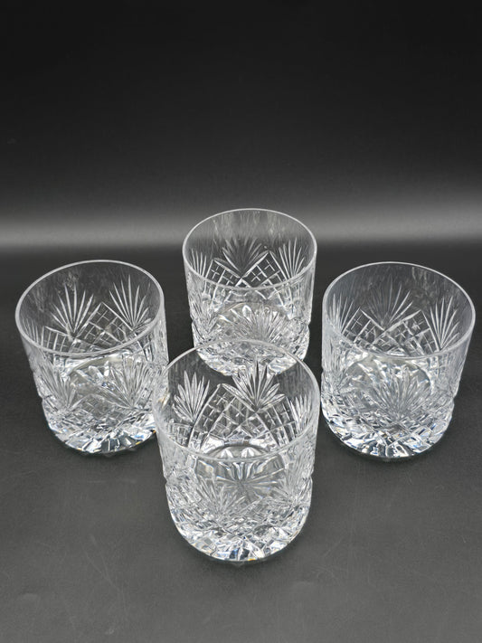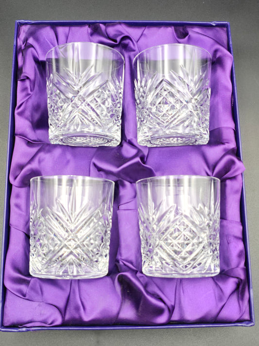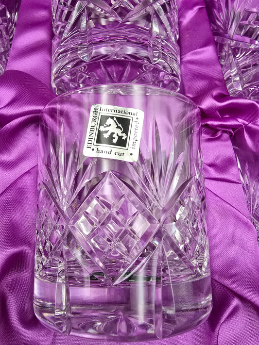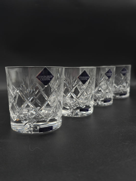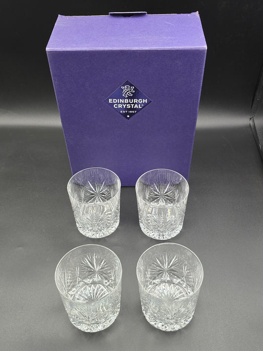Set of 4 Edinburgh Crystal Whisky Tumblers – Boxed, 8oz, Heavy Cut Glass, Vintage Scottish Crystal Barware