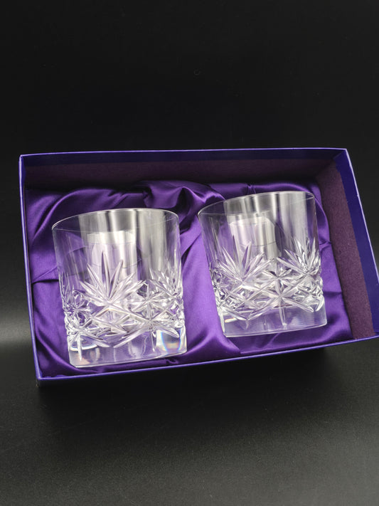 Pair of Edinburgh Crystal Duet Pattern Tumblers – 10oz – Signed, in Original Satin-Lined Box – 8.5cm Tall – Vintage Scottish Cut Crystal