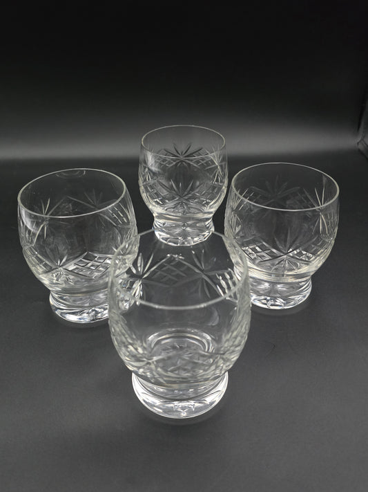Set of 4 vintage Starburst Base Crystal Tumblers – 350 ml, 10 cm Tall, Diamond-Cut Design