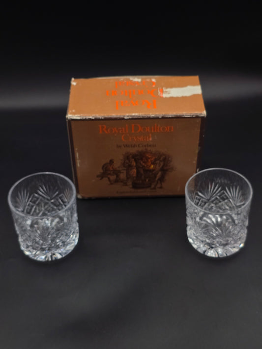 Pair of Royal Doulton (Webb Corbett) “Juno” 6 oz Lead Crystal Tumblers – Fans & Flutes, Star‑cut Base, Original Box