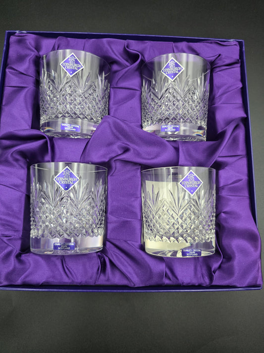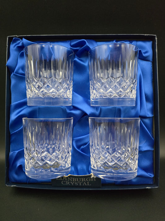 Set of 4 Vintage Edinburgh Crystal Appin Pattern 8oz Tumblers. Boxed.