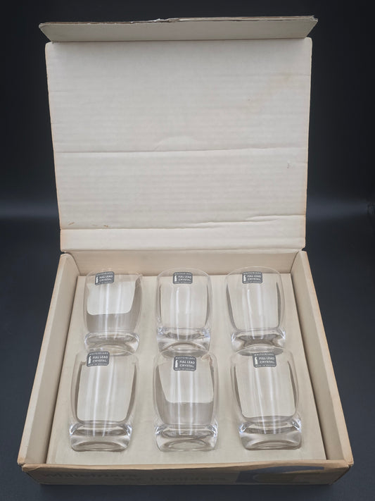 Vintage Boxed Set of 6 Whitefriars 5 oz Lead Crystal Tumblers – Original Stickers – Mid‑Century English Barware
