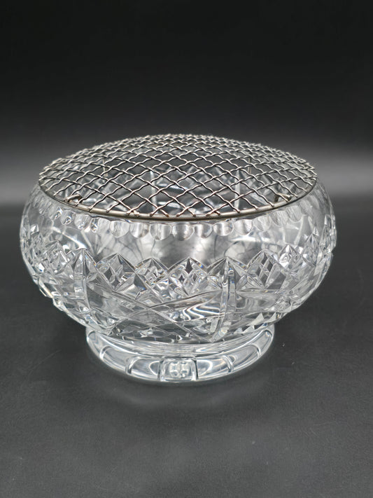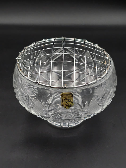 Bohemia Crystal Small Rose Posy Bowl with Star Base & Wire Mesh Frog, 4.5" Vintage Czech Crystal Vase
