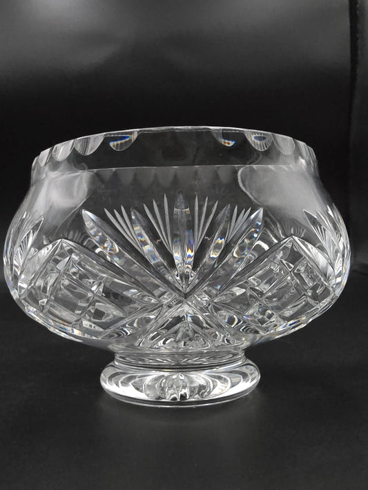 Vintage Lead Crystal Rose Bowl – 17.5cm Star Cut Base & Cross Pattern – Medium Table Centrepiece Vase