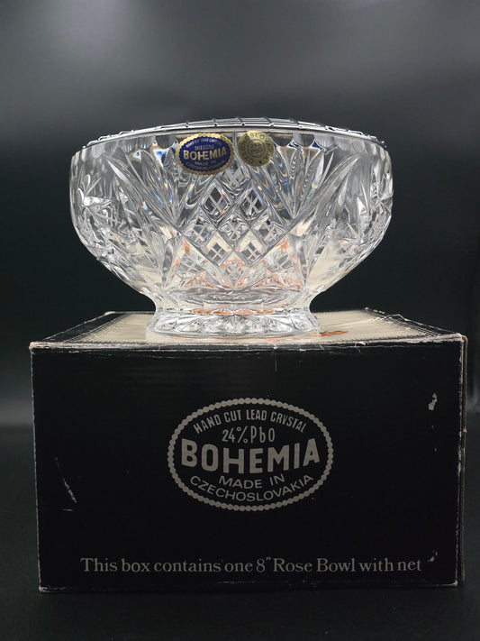 Large 8" Bohemian Lead Crystal Rose Bowl – 24% Hand-Cut Crystal, Heavy 1.8kg, Vintage Czech Centrepiece Vase