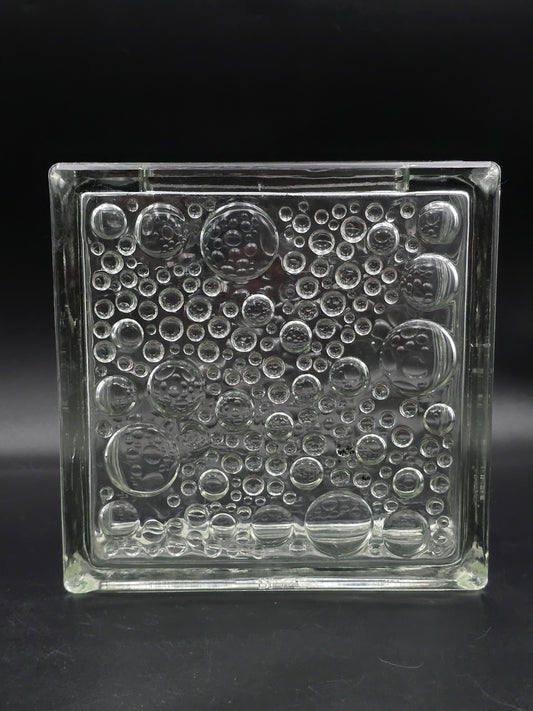 Vintage German Square Glass Vase – 19cm Bubble Pattern, Heavy Pressed Glass, Mid-Century Modern, Textured Art Glass