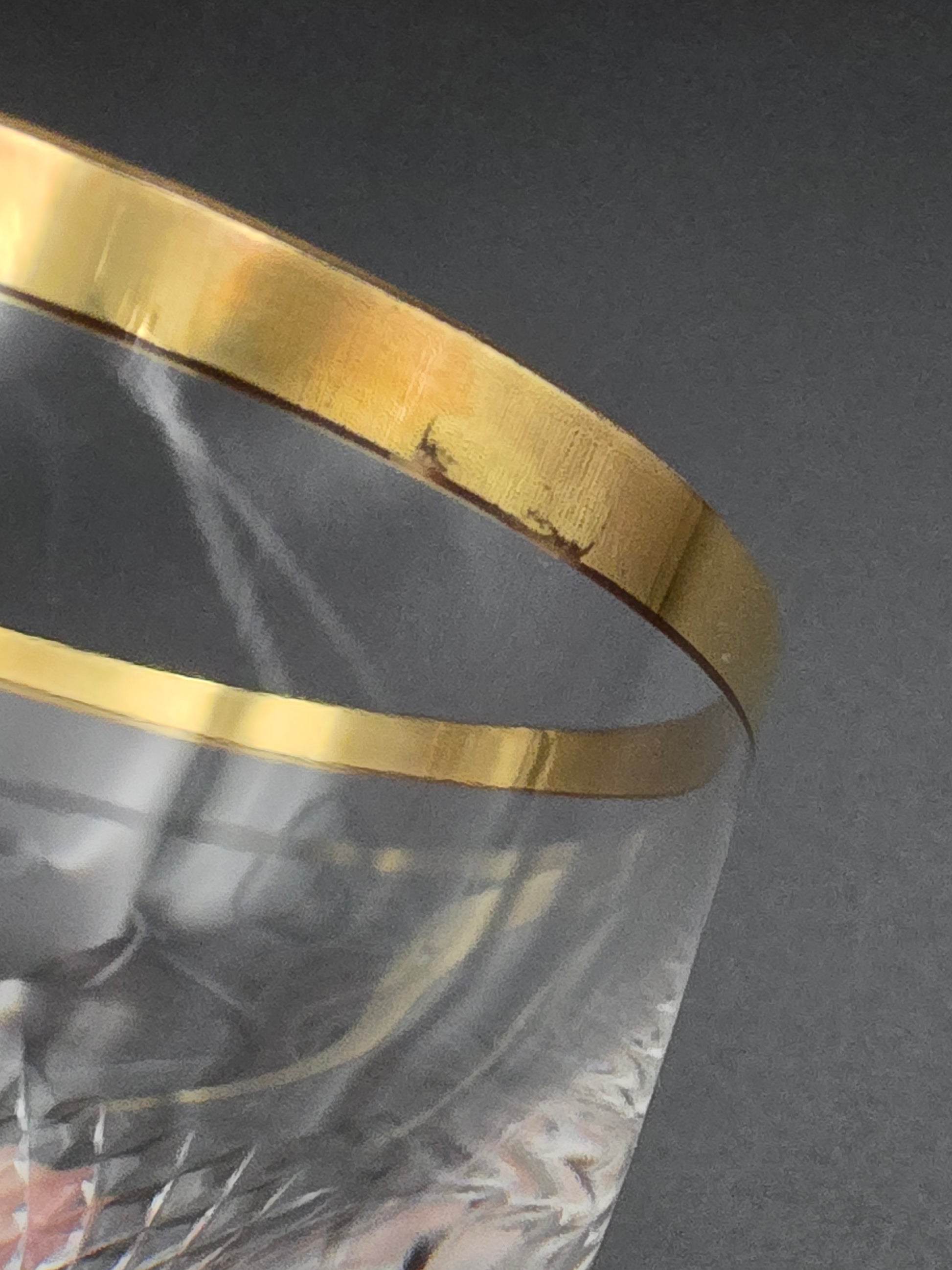 Set of 5 Beautiful Crystal wine Glasses with Gold coloured banding. 250ml. 13.5cm tall.