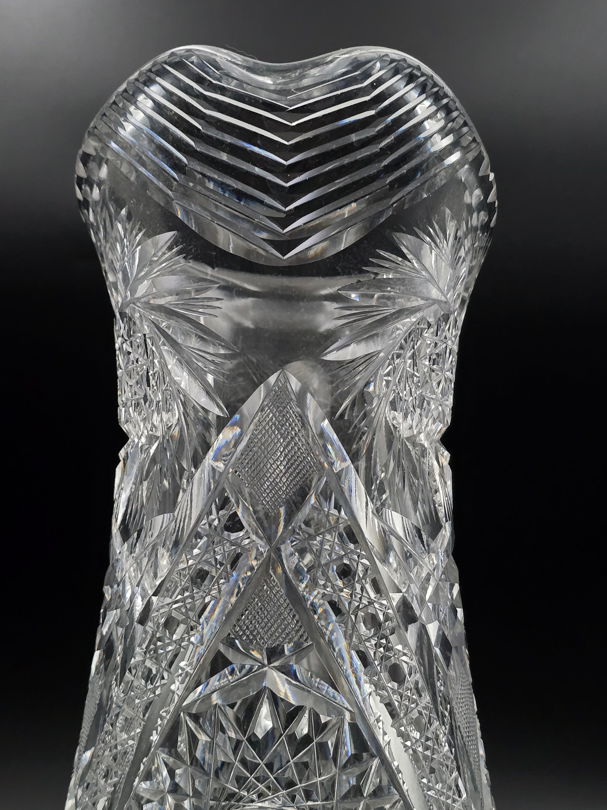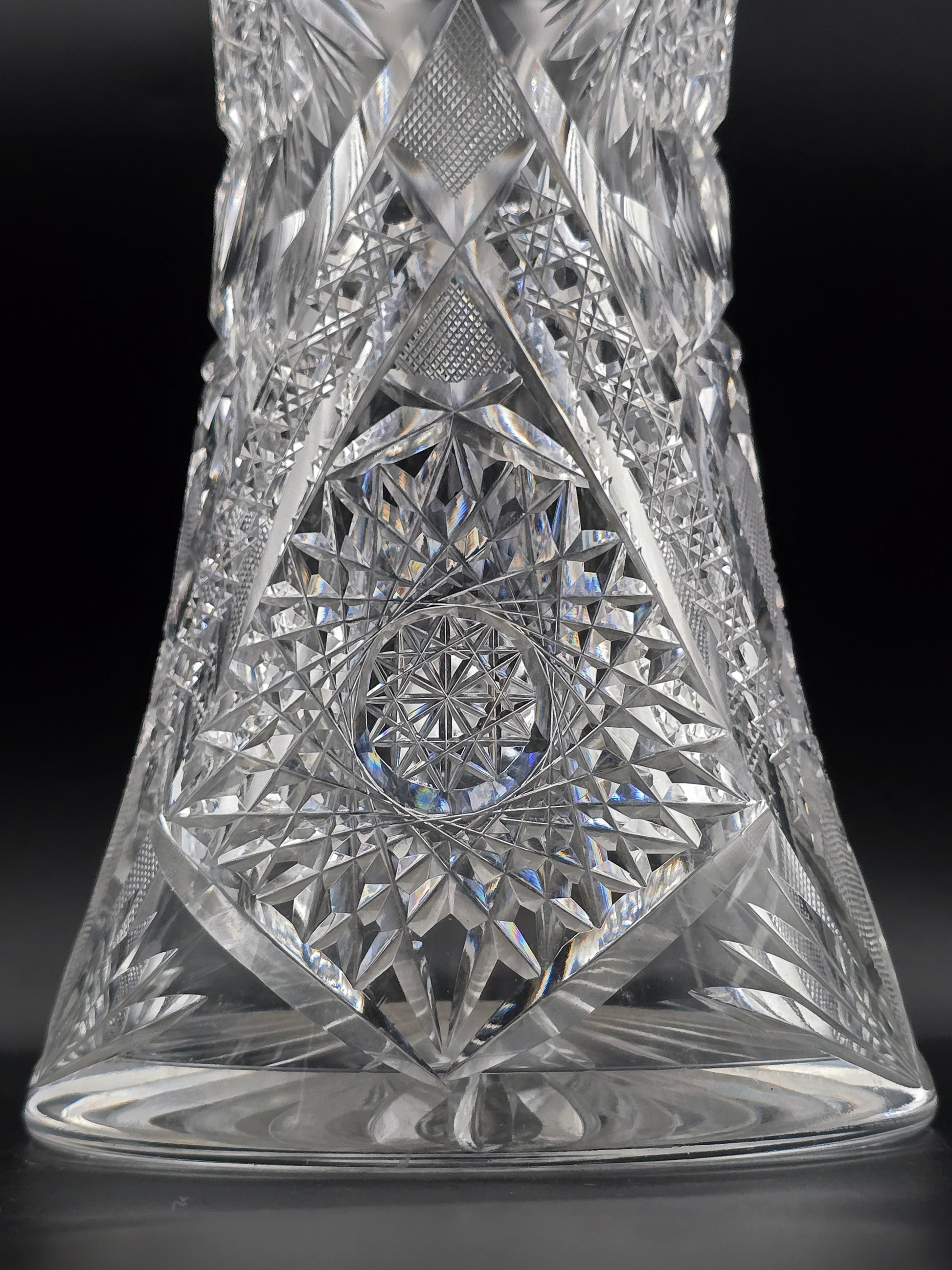 Beautiful pinwheel pattern cutting with deep, precise cuts that catch and refract the light beautifully