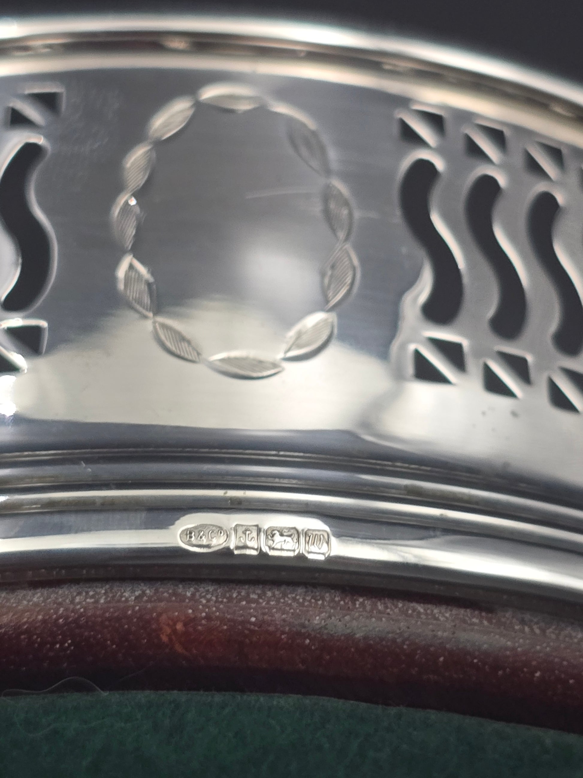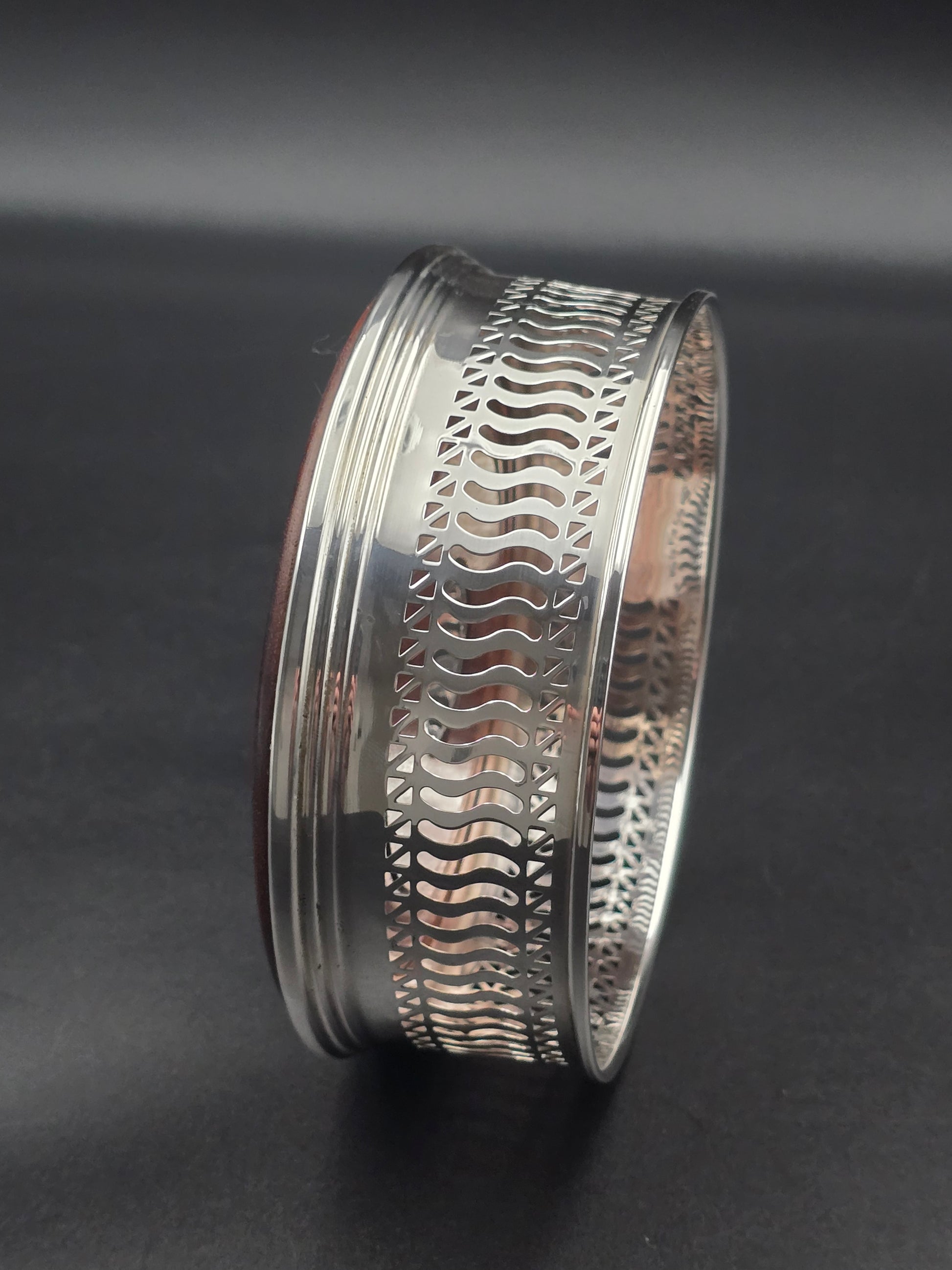 Antique Solid Silver Wine Bottle Coaster, Barker Brothers, Birmingham 1921, Wood Base & Felt Lining, Original Box