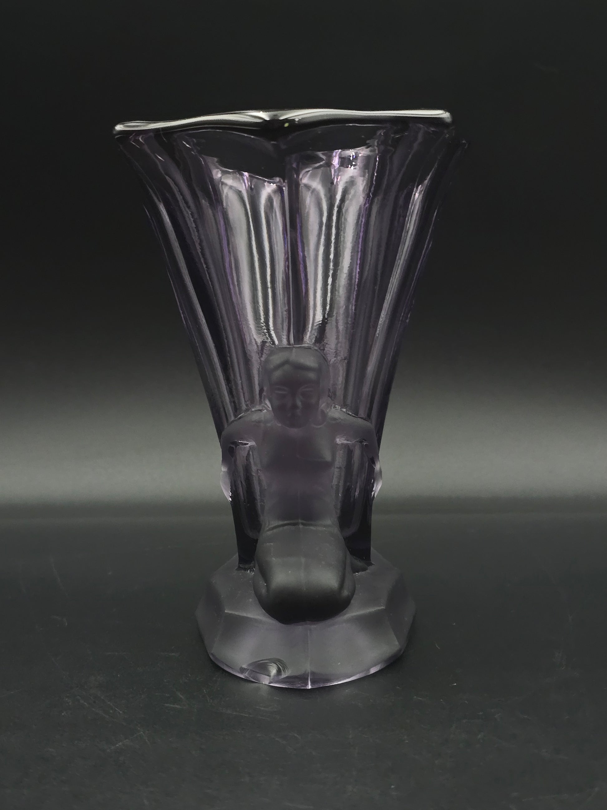 Art Deco Mauve Frosted Glass Vase by Walther & Söhne—16.5 cm Vintage German Pressed Glass