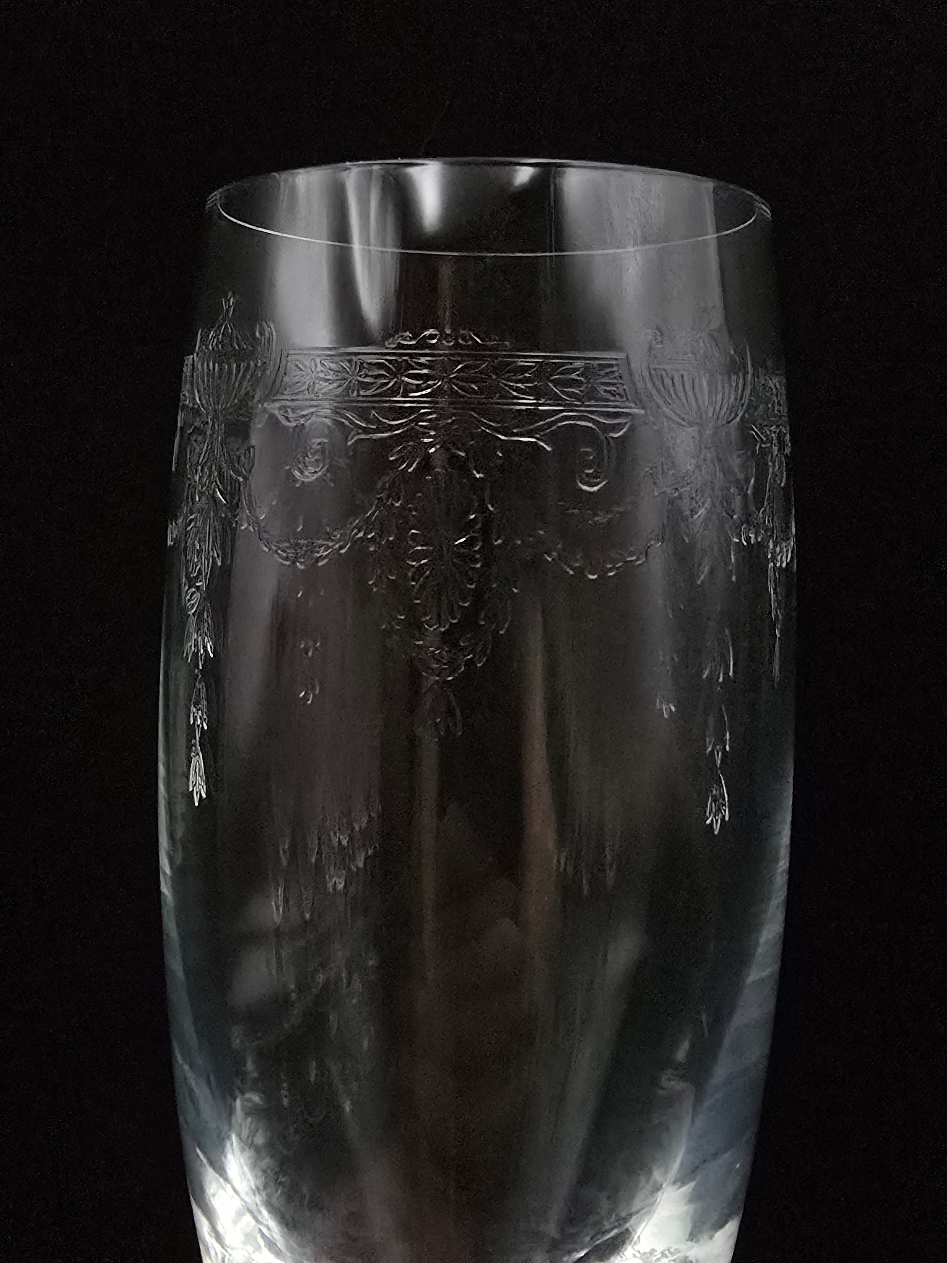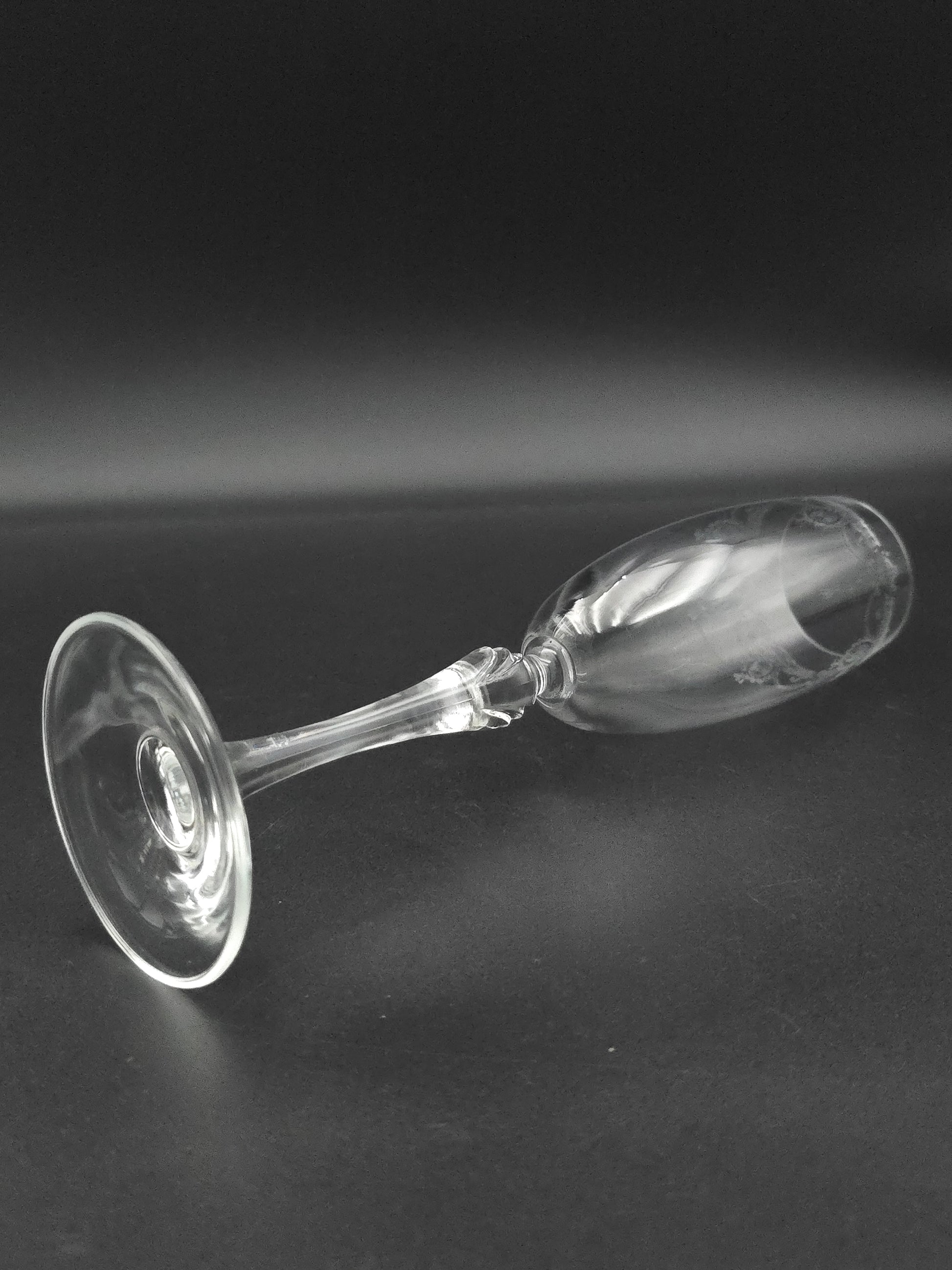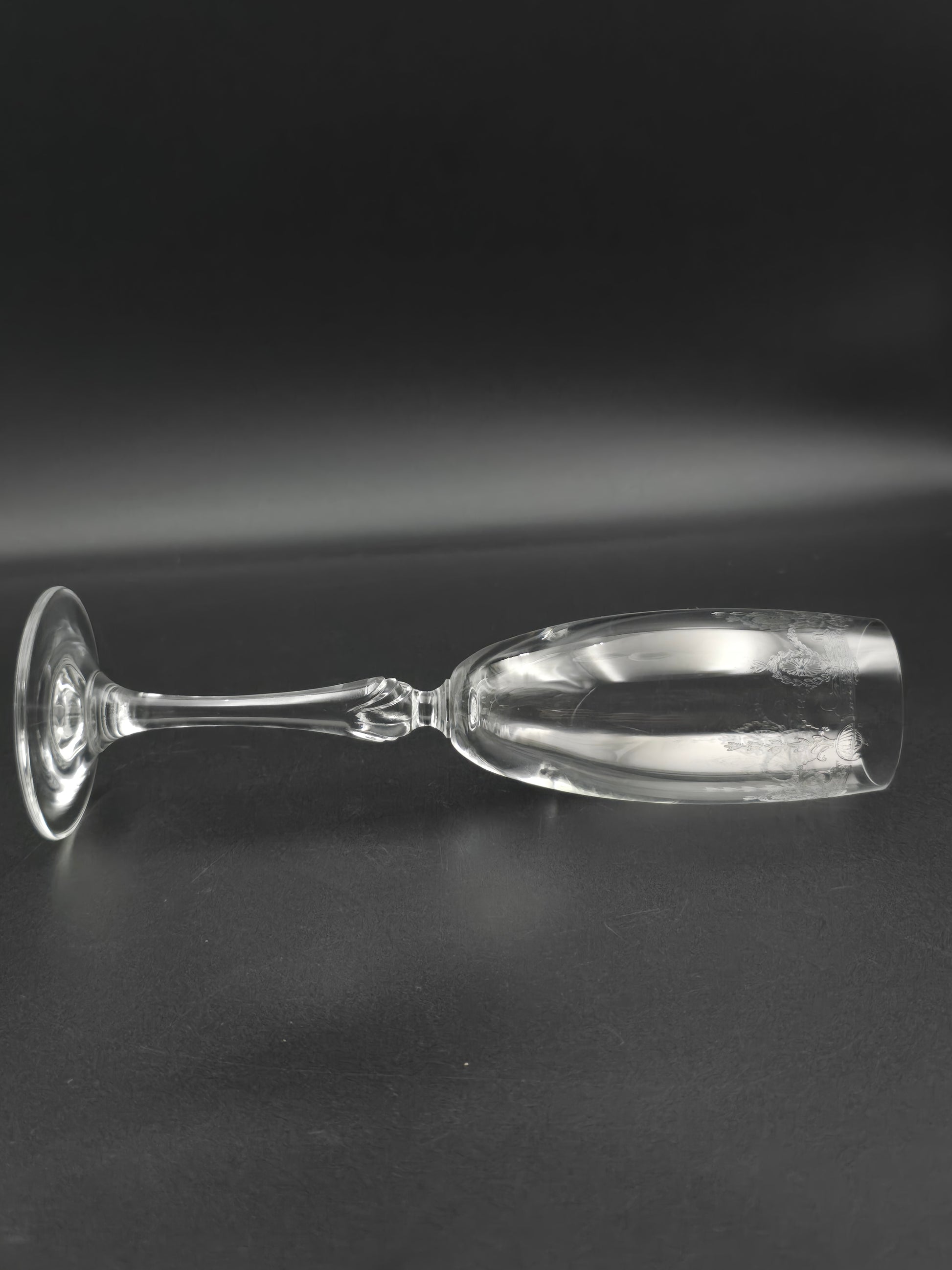Beautiful Set of 5 Etched Crystal Champagne flutes 175ml. 22cm tall.