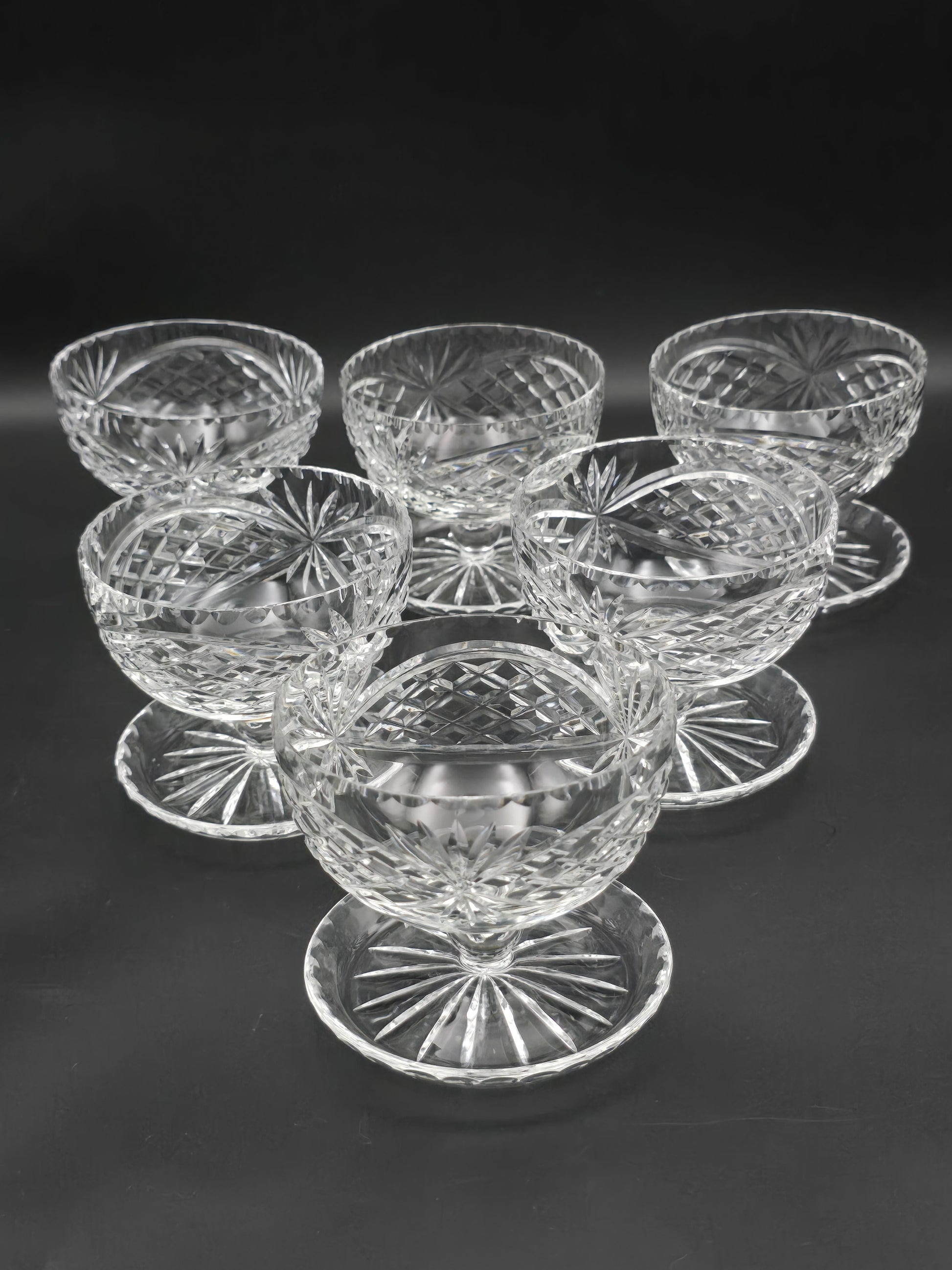 Beautiful vintage set of 6 Lipped Crystal starter or dessert saucer bowls