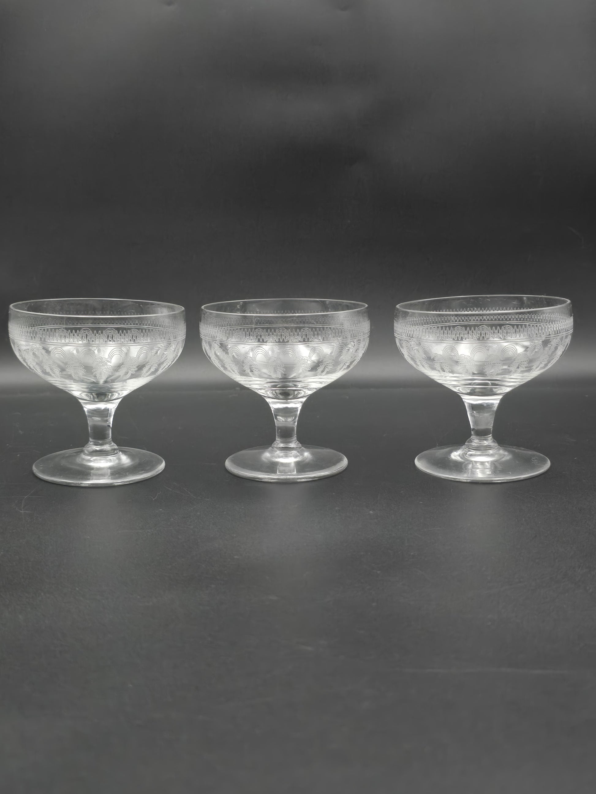 Elegant trio Lady Hamilton Pall Mall Crystal Champagne Coupes. 200ml