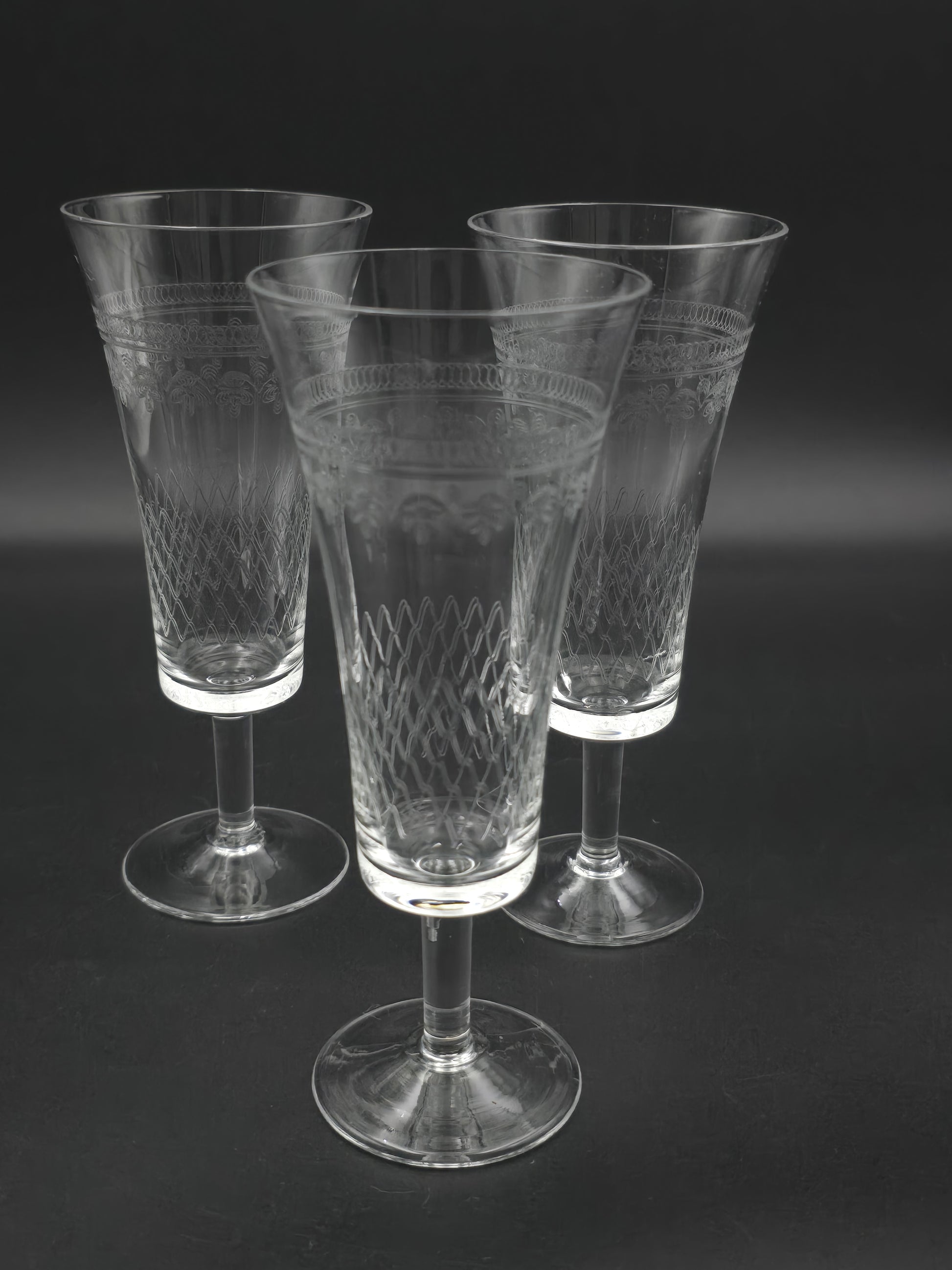 Lady Hamilton Pall Mall Edwardian Crystal Champagne Flutes – Set of 3 | Short Stem | 165ml | c.1910s – Antique Elegance