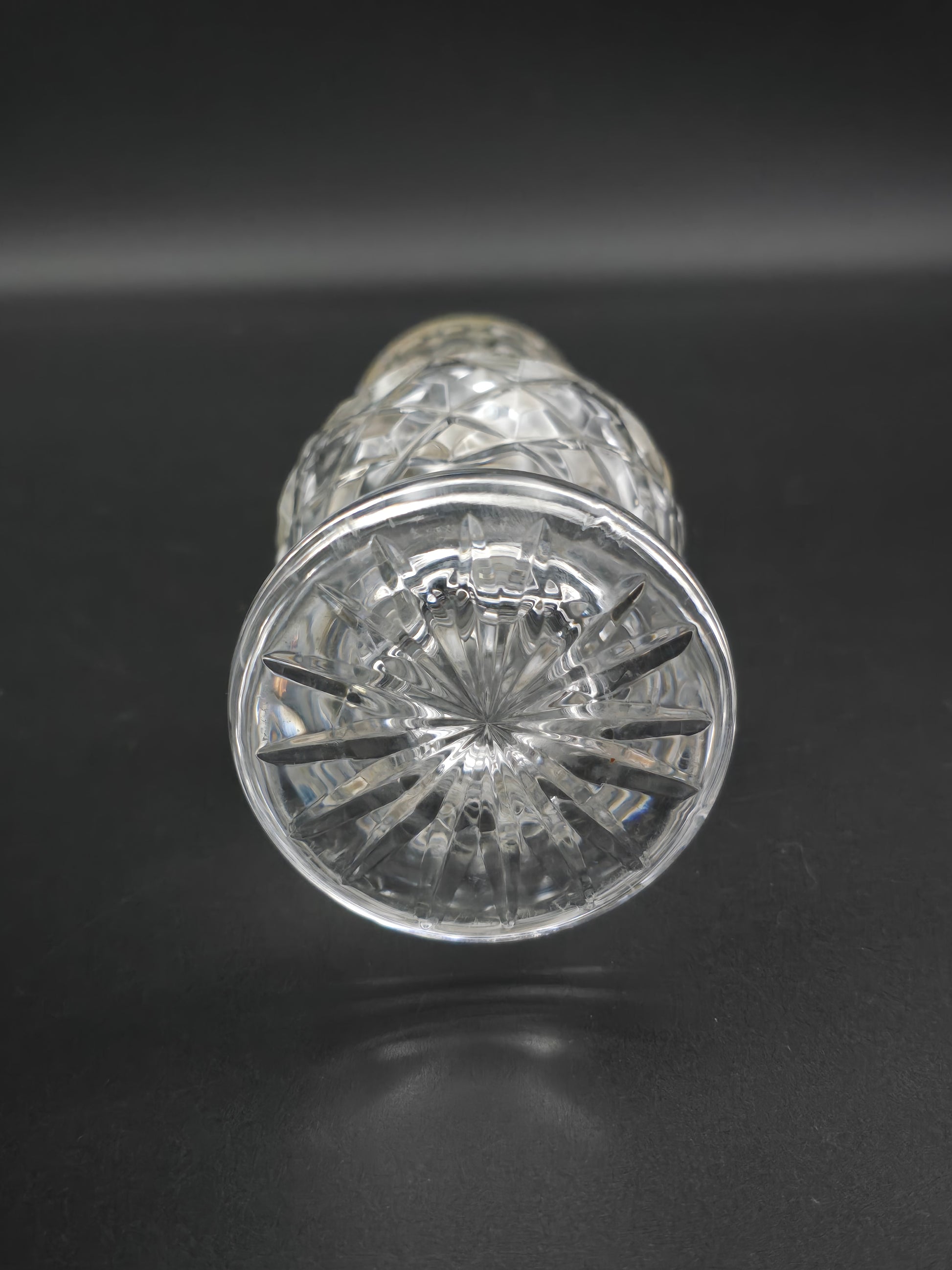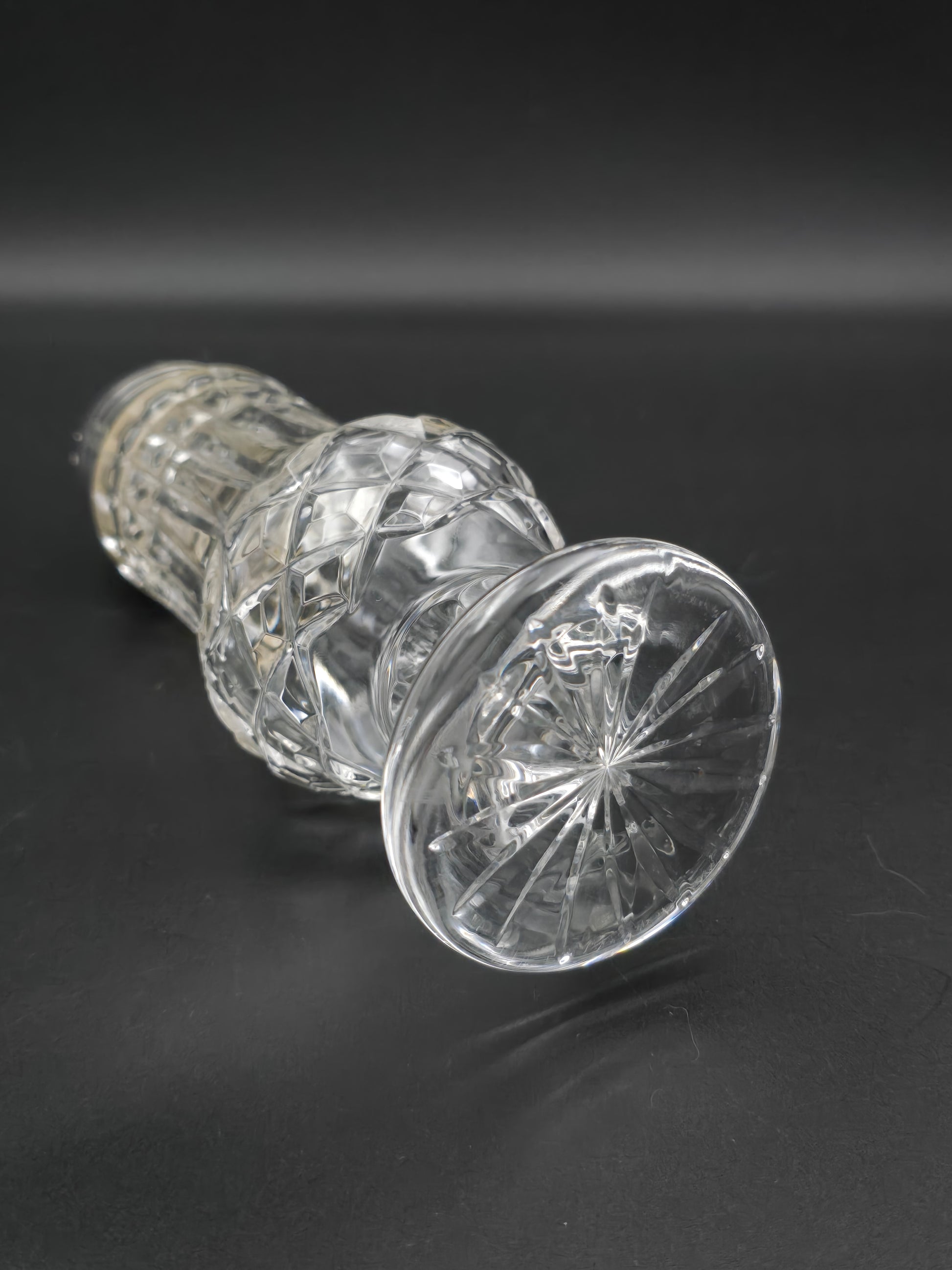 This Large Vintage cut glass sugar shaker stands 20cm tall and features a star pattern base whilst also providing a nice weight and size.