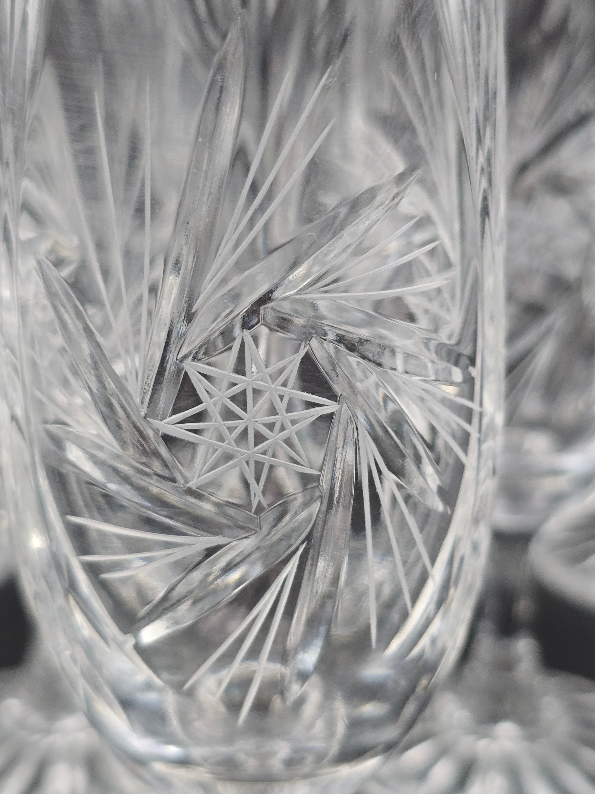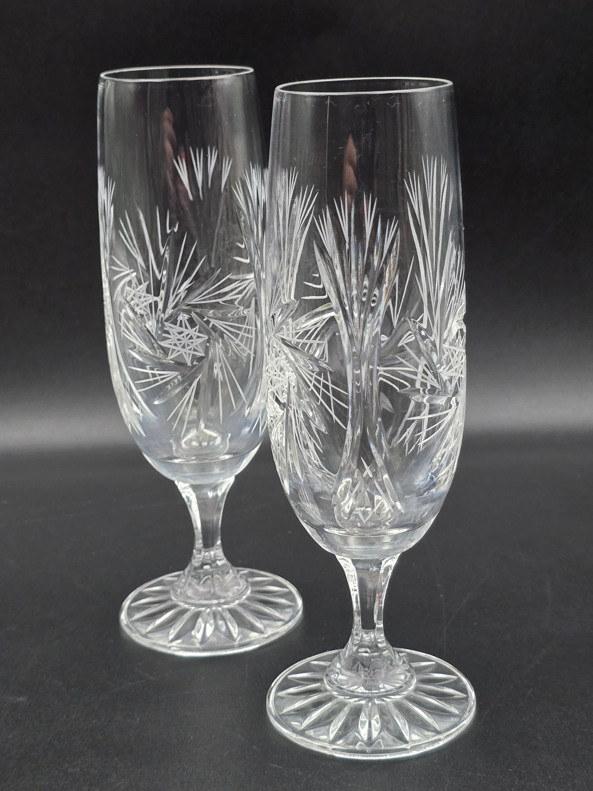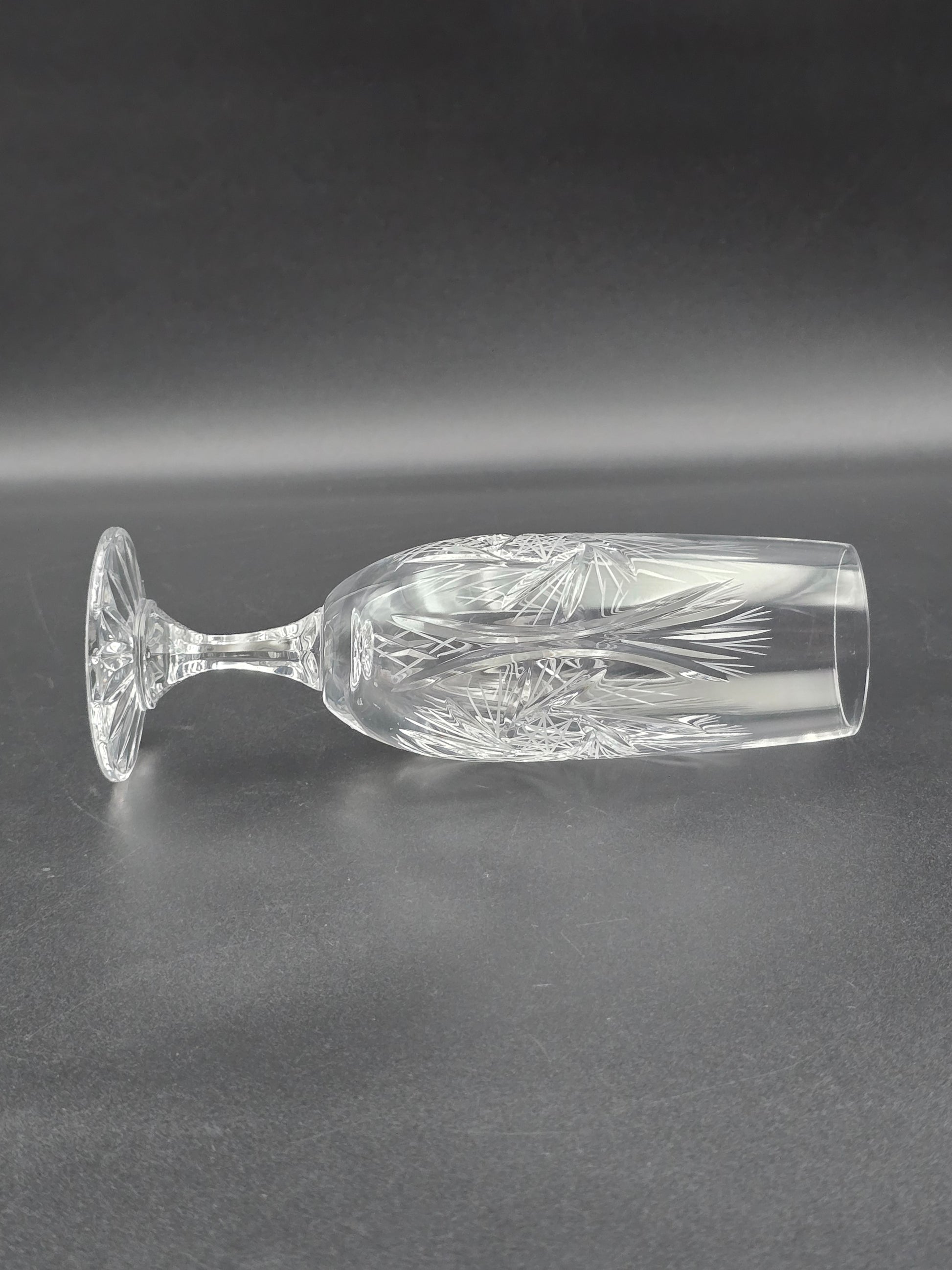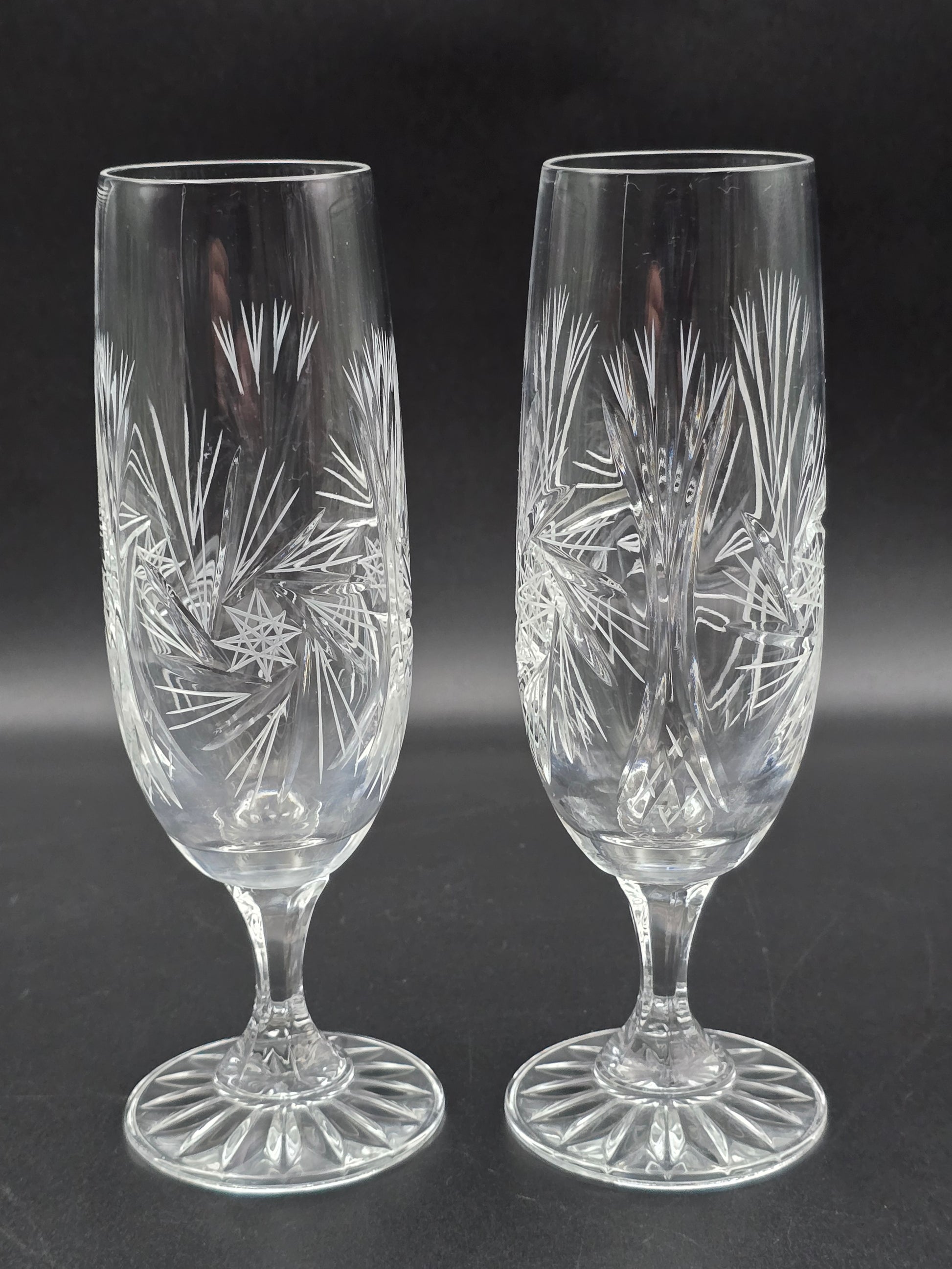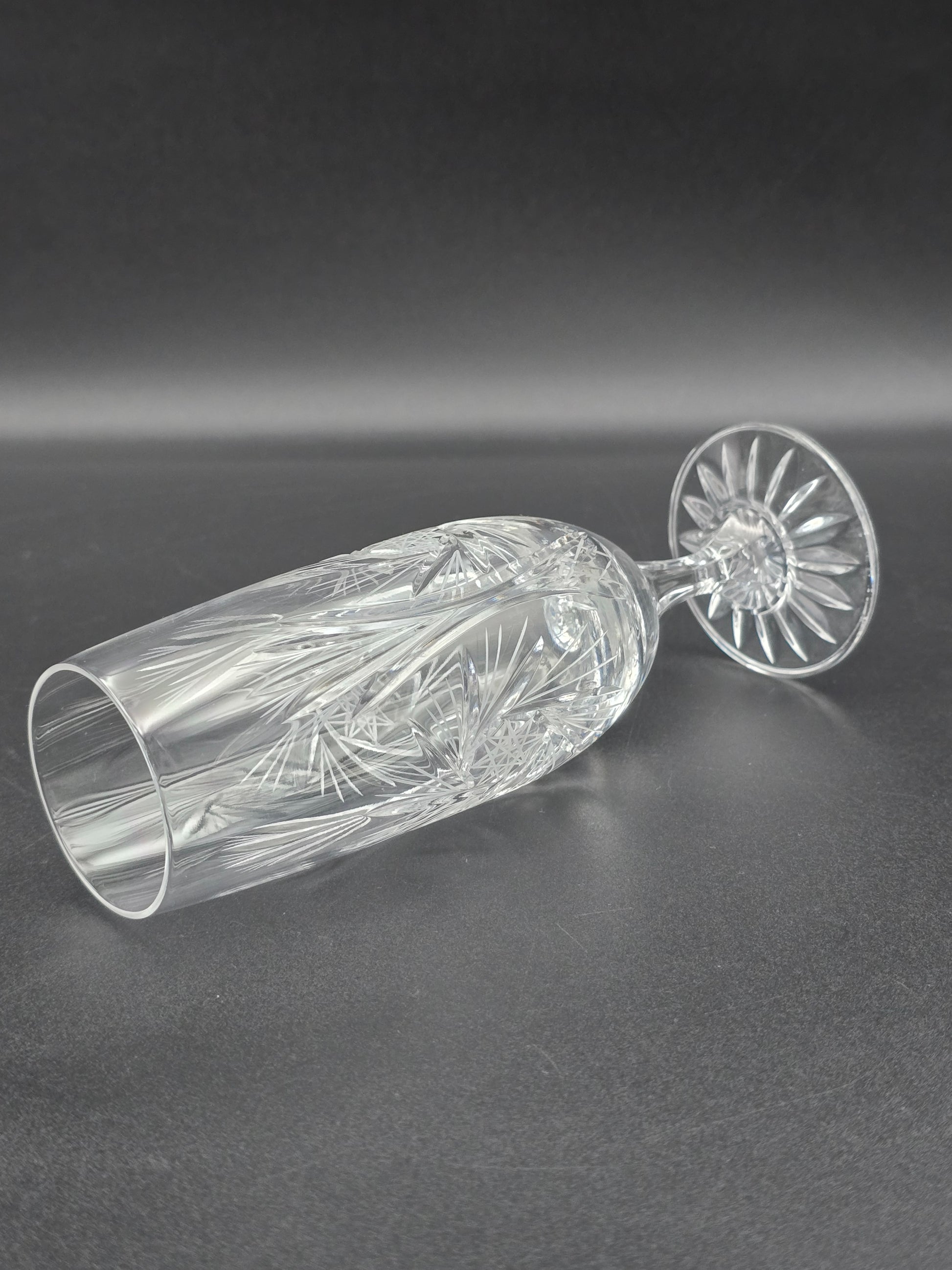 Pair of American Cut Pinwheel pattern fluted Crystal Champagne flutes. 200ml.