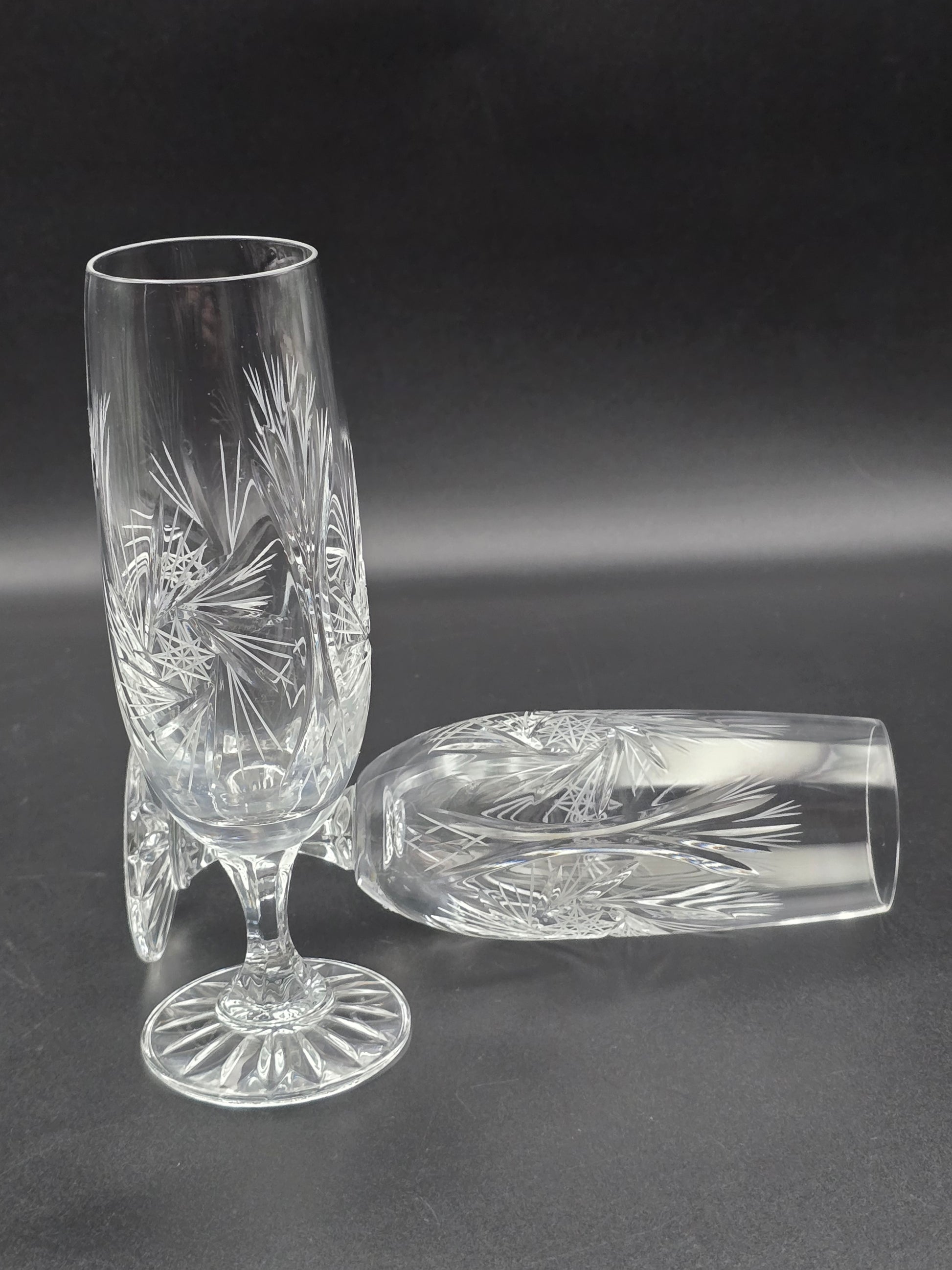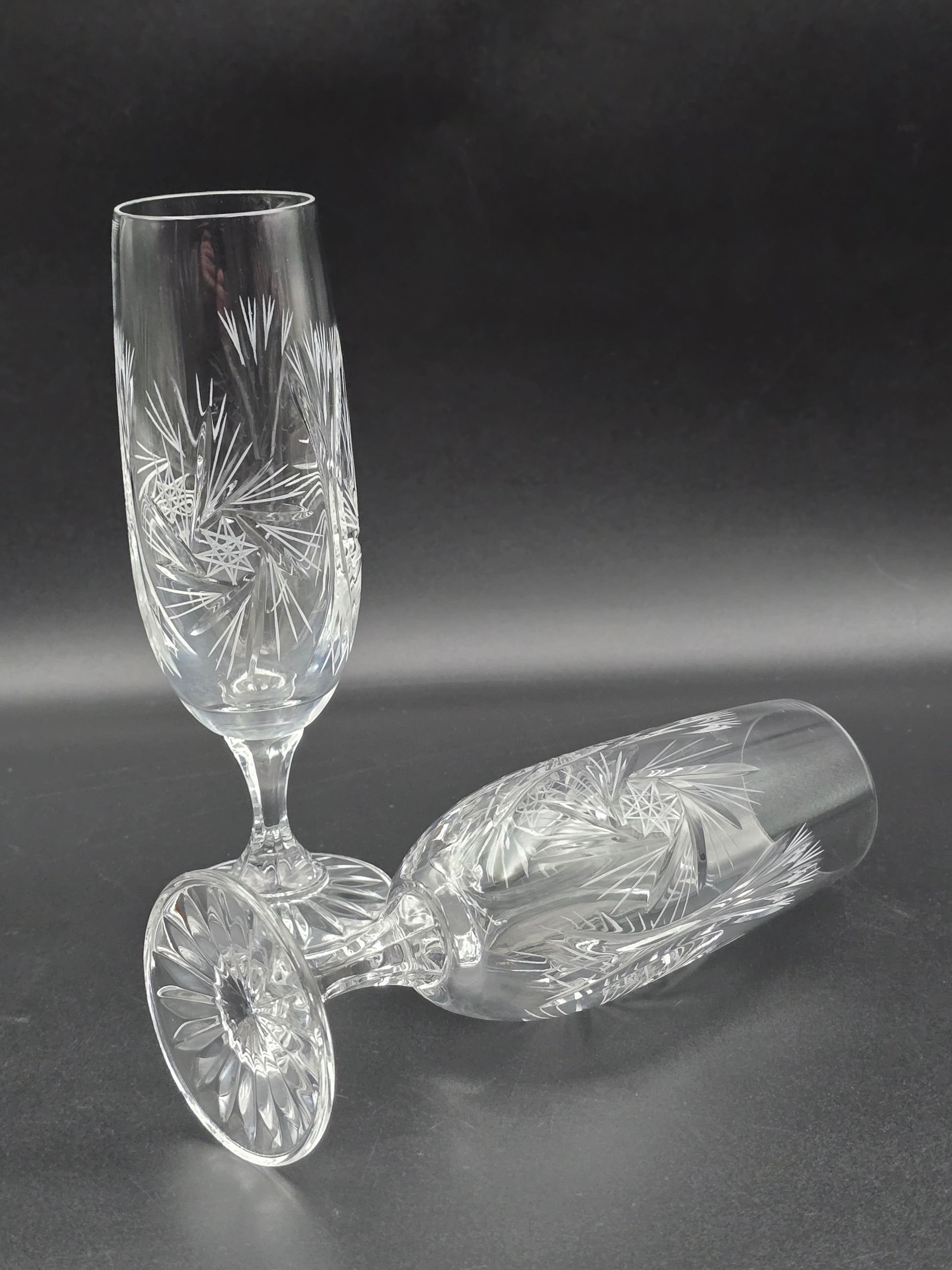 Introducing our pair of Pinwheel American Cut fluted Crystal Champagne Flutes.