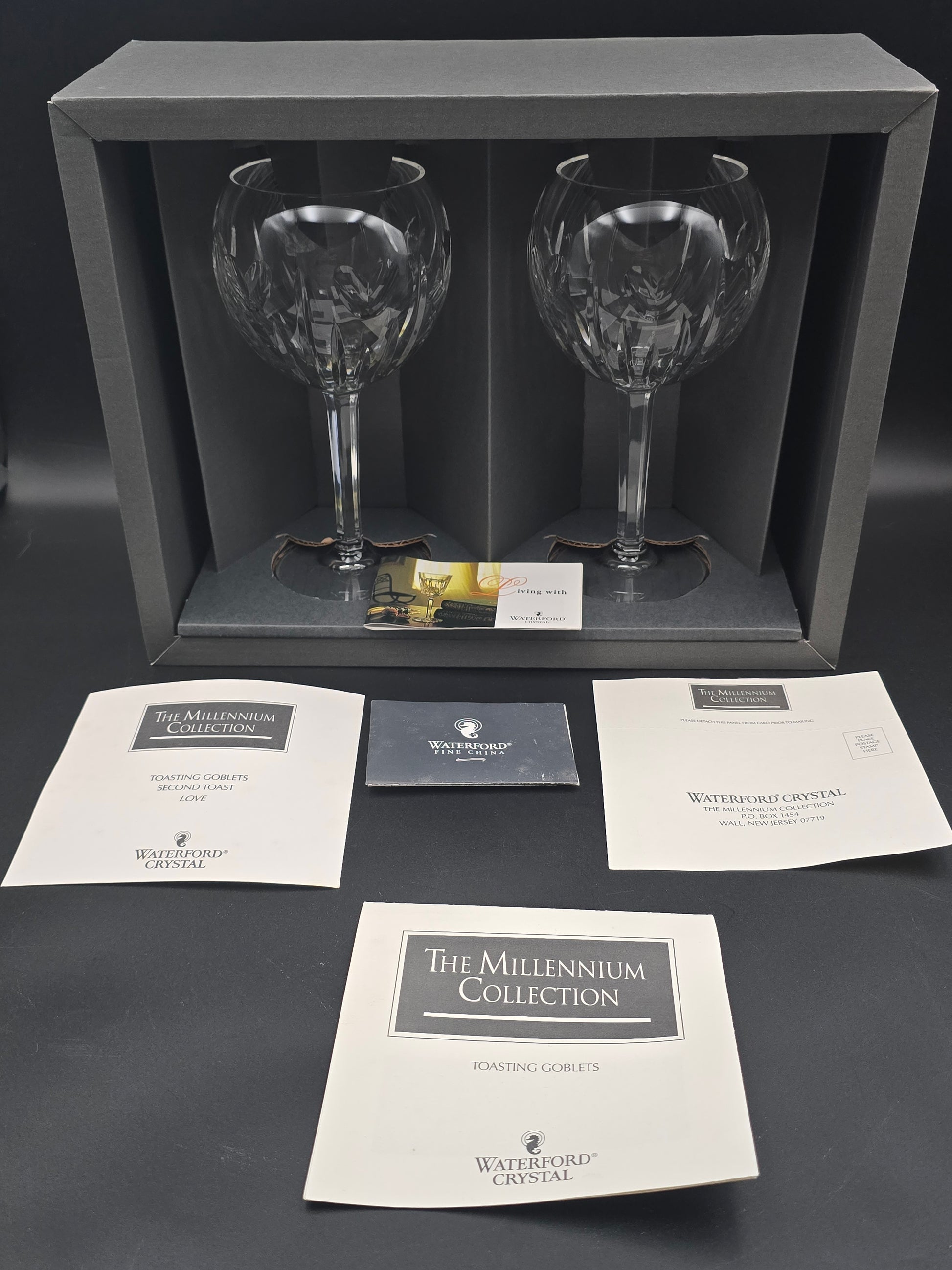 Waterford Crystal The Millennium Collection Toasting Goblets Pair. Second Toast - Love. Boxed.